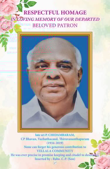 Our patrons laid the strong foundation upon which our organization stands today, guiding us with their wisdom and dedication. We fondly remember the invaluable contributions of our former members, whose vision and hard work continue to inspire every step we take forward. The growth of KVMS Vellayambalam Upasabha is a tribute to the commitment and selfless service of our past patrons who steered the organization with devotion. Our heartfelt gratitude to the former members whose guidance and leadership shaped the Vellayambalam Upasabha into the vibrant community it is today. The legacy of our past patrons continues to be our guiding light, reminding us of the values.